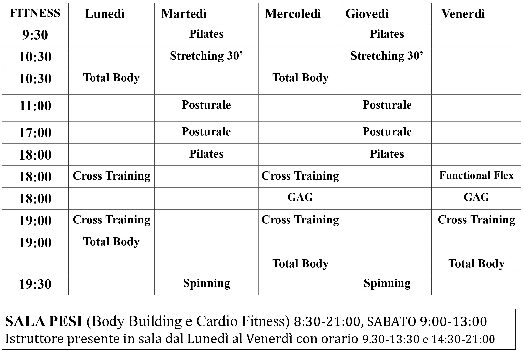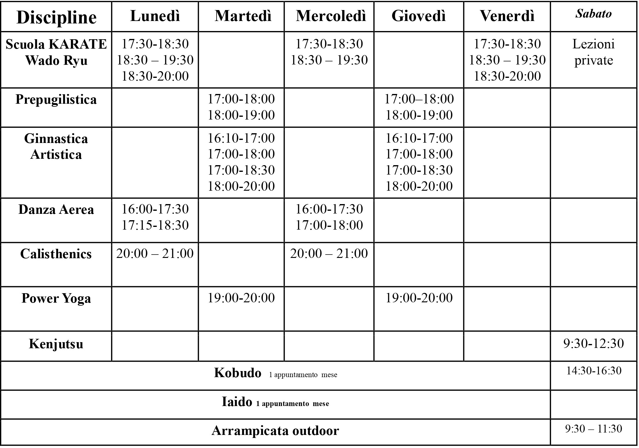 | Lunedì | Martedì | Mercoledì | Giovedì | Venerdì | Sabato |